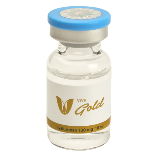 ViVa V-Gold – вязкий биоревитализант (бустер) на основе модифицированной хлористым цинком ГК (65 мг гиалуронан натрия и 10 мг цинк), предназначен для увеличения и восполнения объема мягких тканей по медицинским и эстетическим показаниям. Препарат удерживается в тканях до 3 месяцев и предназначен для внутри-, субдермального и подслизистого введения. Он не содержит эфира BDDE, который по стандартам филеров и объемообразующих гелей входит в состав обыкновенной гиалуроновой кислоты.
