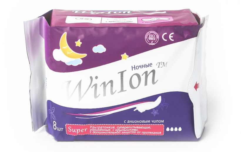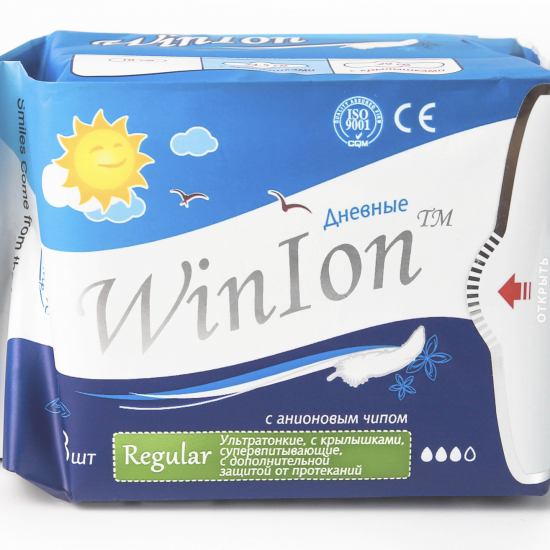Серия анионовых женских прокладок WinIon (ВинИон) положила начало использованию прокладок в лечебно-профилактических целях. Анионовые гигиенические прокладки WinIon – это революционная инновация в области товаров личной гигиены. Они повышают уровень гигиенической защиты. Только Winalite предлагает эксклюзивные гигиенические прокладки с высоким уровнем впитываемости, рассеиванием анионов, антибактериальным эффектом и защитой от подделок.